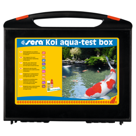 La Sera Koi Aqua-Test Box est une mallette d’analyse complète spécialement conçue pour les propriétaires de bassins à carpes koi. Elle regroupe l’ensemble des tests essentiels pour surveiller les paramètres vitaux de l’eau : pH, GH, KH, nitrites, nitrates et ammonium/ammoniac.