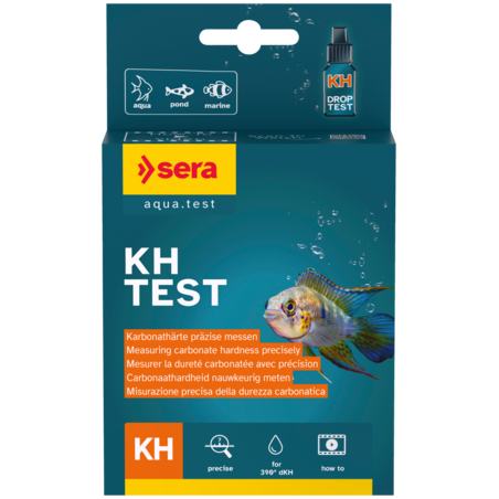 Le Sera Test kH permet de mesurer avec exactitude la dureté carbonatée (KH) dans les aquariums et les bassins de jardin, conformément aux normes scientifiques. Une KH correctement ajustée est essentielle pour éviter les variations brusques du pH, notamment les chutes soudaines qui peuvent mettre en danger les poissons.